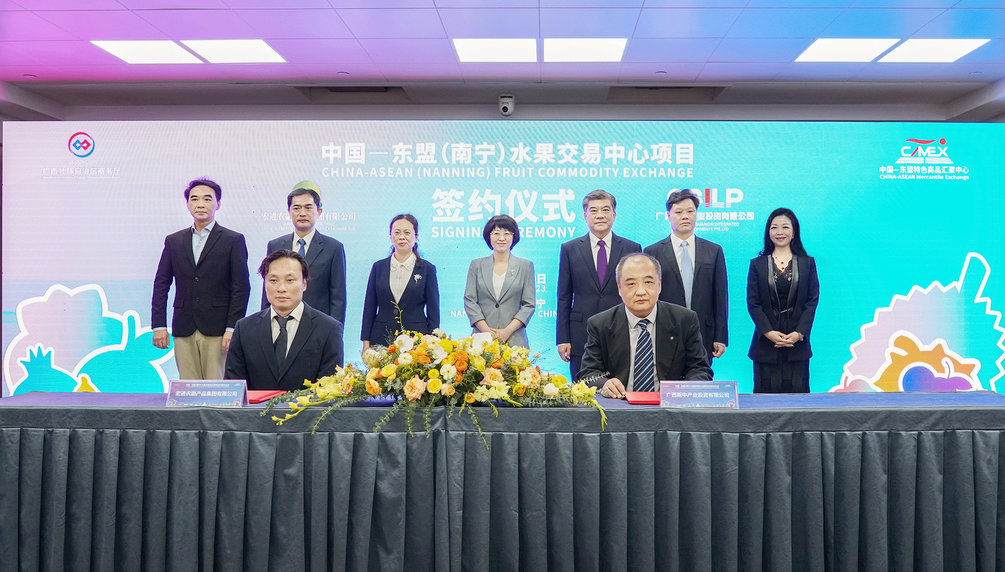 2023年11月9日,中國—東盟(南寧)水果交易中心項目合作簽約儀式在廣西壯族自治區(qū)商務(wù)廳舉行,標志著項目合作取得實質(zhì)性進展、項目建設(shè)步入新的發(fā)展階段。