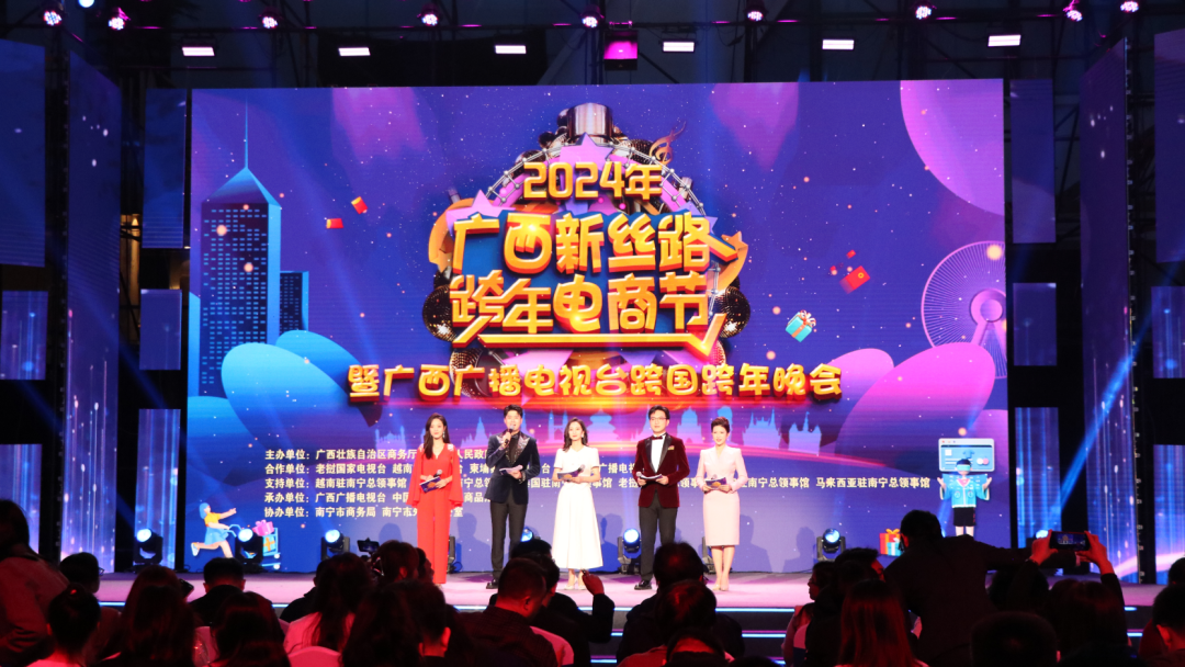網(wǎng)羅八桂優(yōu)品、東盟好物,共赴e場(chǎng)消費(fèi)盛宴。由廣西壯族自治區(qū)商務(wù)廳聯(lián)合南寧市人民政府,聯(lián)動(dòng)越南、柬埔寨、泰國(guó)、老撾、緬甸、馬來(lái)西亞駐南寧總領(lǐng)事館共同舉辦的2024年廣西新絲路跨年電商節(jié)暨廣西廣播電視臺(tái)跨國(guó)跨年晚會(huì)在國(guó)內(nèi)主會(huì)場(chǎng)廣西南寧市中國(guó)—東盟特色商品匯聚中心(以下簡(jiǎn)稱“匯聚中心”)、海外分會(huì)場(chǎng)老撾萬(wàn)象國(guó)家文化宮同步精彩啟幕。