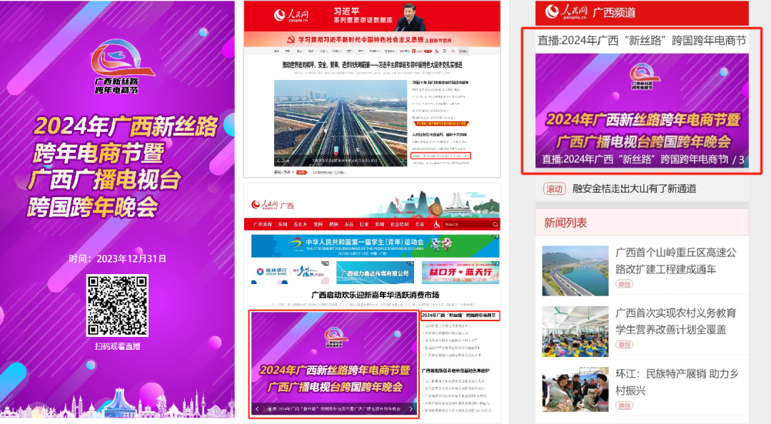 晚會(huì)通過(guò)廣西廣播電視臺(tái)直播,信號(hào)覆蓋228個(gè)國(guó)家及地區(qū),老撾國(guó)家電視臺(tái)、柬埔寨國(guó)家電視臺(tái)、越南數(shù)字電視臺(tái)、緬甸國(guó)家廣播電視臺(tái)等海外媒體平臺(tái)以及中央廣播電視總臺(tái)、新華社、人民網(wǎng)、廣西日?qǐng)?bào)、廣西廣播電視臺(tái)、今日頭條、抖音等國(guó)內(nèi)主流媒體構(gòu)建宣傳報(bào)道“云平臺(tái)”,形成融媒體矩陣進(jìn)行直播或宣發(fā),持續(xù)制造熱點(diǎn)話題,提高全網(wǎng)總關(guān)注度,打造“廣西最火跨年夜”。