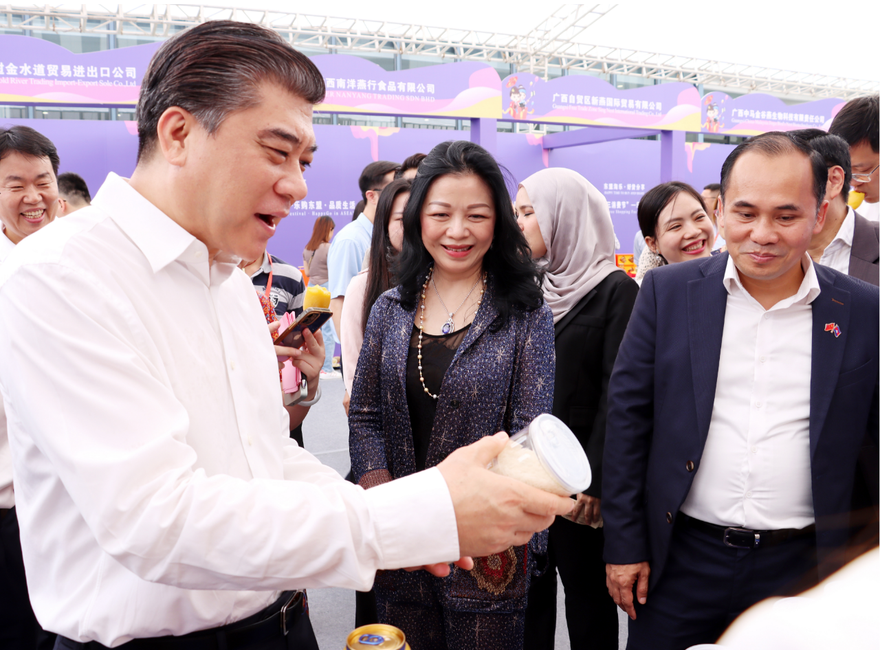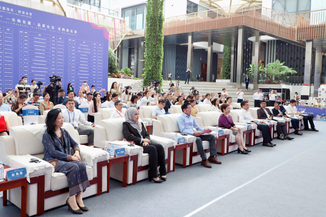 廣西壯族自治區(qū)商務(wù)廳黨組書記、廳長(zhǎng)楊春庭,柬埔寨王國駐南寧總領(lǐng)事館總領(lǐng)事唐肅安,馬來西亞駐南寧總領(lǐng)事館副領(lǐng)事法拉·伊麗莎,緬甸聯(lián)邦共和國駐南寧總領(lǐng)事館總領(lǐng)事覺梭登,泰國駐南寧總領(lǐng)事館總領(lǐng)事彬嘉瑪·塔維她雅濃,越南社會(huì)主義共和國駐南寧總領(lǐng)事館總領(lǐng)事杜南忠,中國—東盟特色商品匯聚中心董事長(zhǎng)趙海燕等出席了本次活動(dòng)。