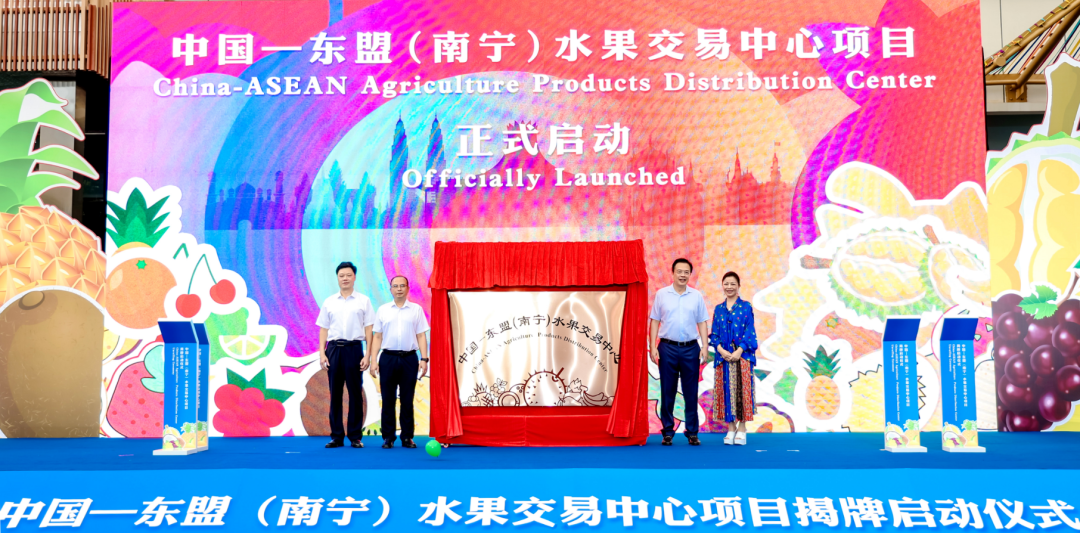 東盟好水果,新鮮零距離。2023年8月27日上午,中國(guó)—東盟(南寧)水果交易中心項(xiàng)目揭牌啟動(dòng)儀式在中國(guó)—東盟特色商品匯聚中心隆重舉行。廣西壯族自治區(qū)商務(wù)廳黨組成員、副廳長(zhǎng)粟堅(jiān),廣西壯族自治區(qū)南寧市委常委、南寧市人民政府副市長(zhǎng)、黨組副書(shū)記陳竑,廣西壯族自治區(qū)南寧高新技術(shù)產(chǎn)業(yè)開(kāi)發(fā)區(qū)管理委員會(huì)黨工委書(shū)記李耕,廣西新中產(chǎn)業(yè)投資有限公司、中國(guó)—東盟特色商品匯聚中心董事長(zhǎng)趙海燕等出席,廣西壯族自治區(qū)南寧市人民政府副秘書(shū)長(zhǎng)劉桂發(fā)主持活動(dòng)。