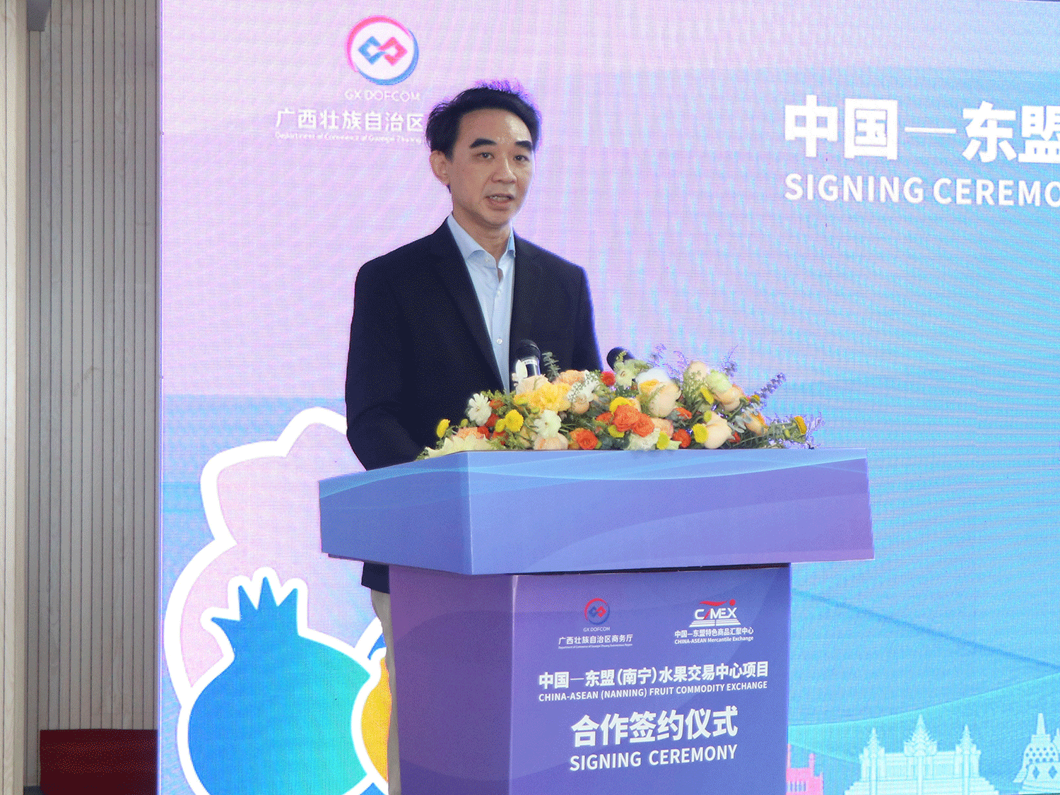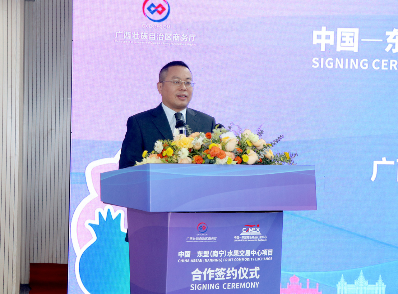 2023年11月9日,中國—東盟(南寧)水果交易中心項目合作簽約儀式在廣西壯族自治區(qū)商務(wù)廳舉行,標志著項目合作取得實質(zhì)性進展、項目建設(shè)步入新的發(fā)展階段。
