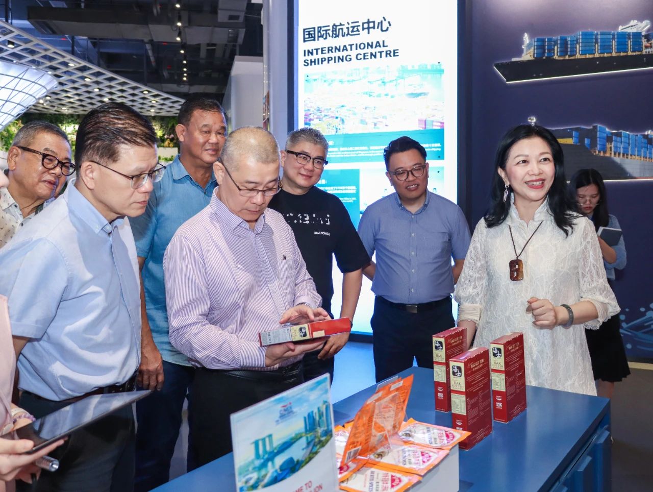 廣西新中產(chǎn)業(yè)投資有限公司、中國(guó)—東盟特色商品匯聚中心董事長(zhǎng)趙海燕熱情接待了考察團(tuán)。在匯聚中心,考察團(tuán)認(rèn)真了解了項(xiàng)目的運(yùn)營(yíng)理念。其中,各主題展館以各國(guó)代表建筑及人文風(fēng)俗元素穿插展示當(dāng)?shù)靥厣唐返淖龇钊硕恳恍?。他們表示,近兩年從多方渠道頻頻聽(tīng)聞匯聚中心,如今置身現(xiàn)場(chǎng)更覺(jué)震撼,尤其是線上數(shù)字化平臺(tái)+線下展館沉浸式商貿(mào)體驗(yàn)相結(jié)合的方式非常新穎。