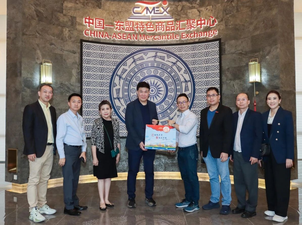 2024年6月6日,泰國工業(yè)聯(lián)合會(huì)副主席維迪·左瓦塔那率由泰國地方政府部門、商協(xié)會(huì)及企業(yè)家組成的考察團(tuán)到中國—東盟特色商品匯聚中心(簡(jiǎn)稱“匯聚中心”)參觀交流。中國—東盟特色商品匯聚中心總經(jīng)理林哲宇熱情接待了考察團(tuán)一行。