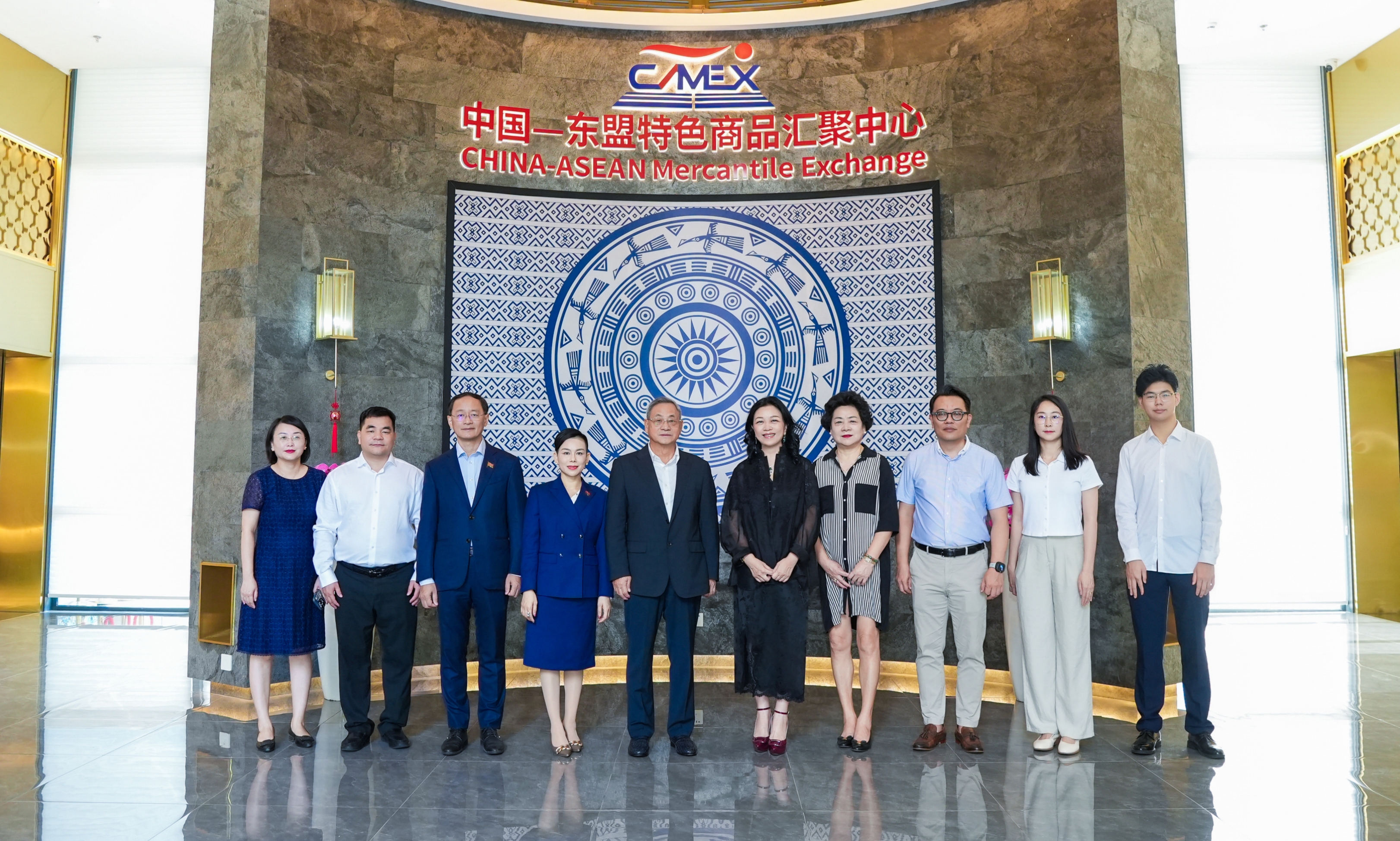 2025年7月28日,柬埔寨RCEP產(chǎn)業(yè)合作委員會(huì)及柬埔寨國際商會(huì)青年發(fā)展處一行到中國—東盟特色商品匯聚中心(簡稱“匯聚中心”)和中國—東盟水果交易中心(簡稱“水果交易中心”)展廳參觀考察。柬埔寨國際商會(huì)青年發(fā)展處一直與匯聚中心保持著密切溝通與聯(lián)系,并在此前已簽署了《戰(zhàn)略合作備忘錄》。廣西新中產(chǎn)業(yè)投資有限公司、中國—東盟特色商品匯聚中心董事長趙海燕熱情接待了考察團(tuán)一行。