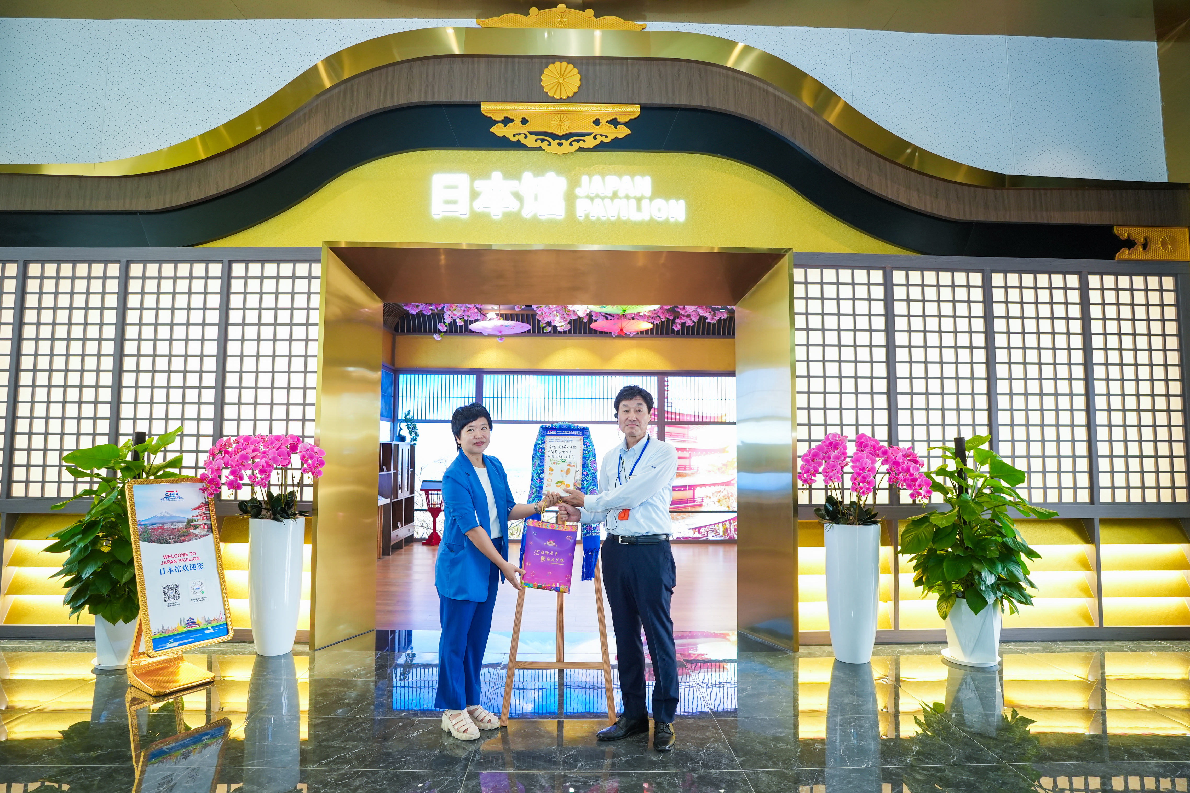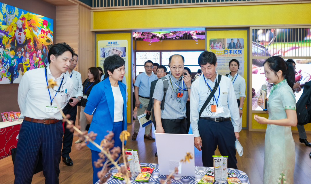 來到日本館,濃郁的日式風(fēng)情瞬間吸引了訪華團(tuán)的注意。作為匯聚中心的特色主題館之一,日本館以"春夏秋冬"為設(shè)計(jì)主線,讓訪客在有限的空間內(nèi)沉浸式感受日本文化的獨(dú)特魅力。大家相繼用鏡頭記錄下獨(dú)具特色的場景布置,并對館內(nèi)陳列的各類特色商品表現(xiàn)出極大興趣,不時駐足了解相關(guān)內(nèi)容。