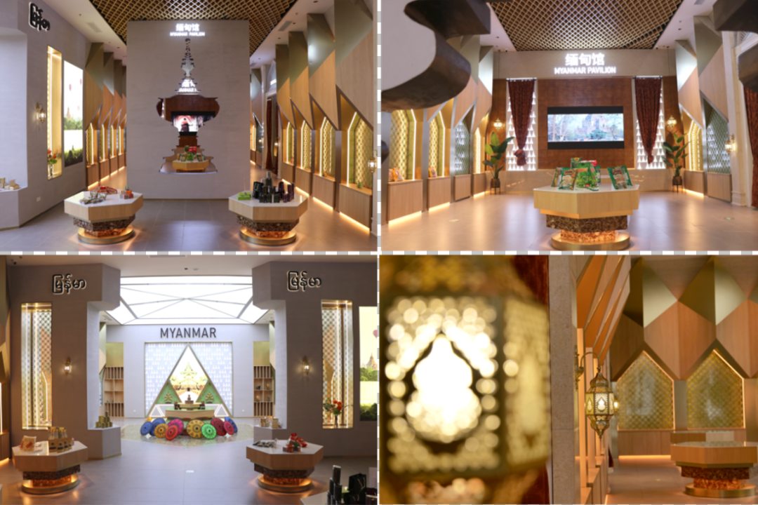 2021年,中新南寧國(guó)際物流園聯(lián)合中國(guó)—東盟博覽會(huì)秘書處共同打造了獨(dú)具特色的中國(guó)—東盟特色商品匯聚中心(以下簡(jiǎn)稱“匯聚中心”)。其中,匯聚中心精心設(shè)計(jì)的緬甸館,以緬甸傳統(tǒng)特色文化為基調(diào),通過提取緬甸經(jīng)典的佛塔造型、翡翠色調(diào)、寶石切割面、漆器形狀等元素,結(jié)合緬甸風(fēng)土人情,巧妙融合到設(shè)計(jì)之中,向公眾呈現(xiàn)一個(gè)“金色緬甸”的效果。自匯聚中心于2022年9月14日正式啟動(dòng)以來,緬甸駐南寧總領(lǐng)事館總領(lǐng)事覺梭登就數(shù)次到訪匯聚中心,尤其對(duì)緬甸館能夠在有限的空間里充分展示緬甸多元文化與特色產(chǎn)品的設(shè)計(jì)理念感到極其認(rèn)同。