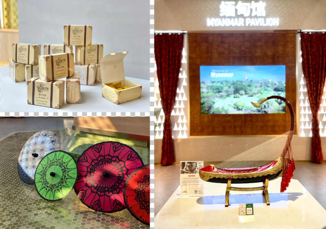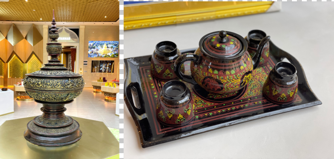 在緬甸館,覺梭登總領(lǐng)事親自就展館陳列的特色產(chǎn)品及傳統(tǒng)手工藝品進(jìn)行了詳細(xì)地介紹。他表示,緬甸有很多特色產(chǎn)品,比如木雕及珠寶、玉石、勃生傘、草帽、籃筐、席子、茶葉、醬料、香米、啤酒等,深受大眾喜愛,尤其是緬甸蒲甘的漆器。漆器制作過程中所用到的漆料和其他顏料都是純天然的,非常環(huán)保。作為緬甸人民生活中不可或缺的工藝品,漆器因其精美的外形、做工考究、實(shí)用的功能得到世界各國(guó)旅游者的青睞。他認(rèn)為,匯聚中心緬甸館無論是在設(shè)計(jì)上還是產(chǎn)品陳列上,都能讓大眾對(duì)緬甸有更深刻的認(rèn)識(shí),滿足人們對(duì)緬甸的探索之心。總領(lǐng)事的精彩介紹讓大家對(duì)緬甸文化有了進(jìn)一步的了解,同時(shí)也吸引了其他到館嘉賓的駐足聆聽。
