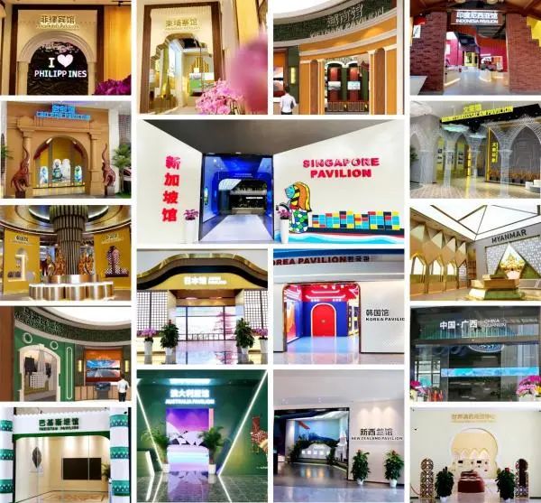 目前,匯聚中心線下17個(gè)風(fēng)格迥異的主題展館已經(jīng)建設(shè)完成,其中包括10個(gè)東盟國(guó)家主題館、4個(gè)RCEP其他區(qū)域國(guó)家主題館、“一帶一路”國(guó)家主題館——巴基斯坦館、世界清真商貿(mào)中心以及中國(guó)廣西館。各主題展館通過提取各國(guó)特色建筑景觀和人文風(fēng)俗等經(jīng)典元素,巧妙融入沉浸式的商貿(mào)體驗(yàn)中。