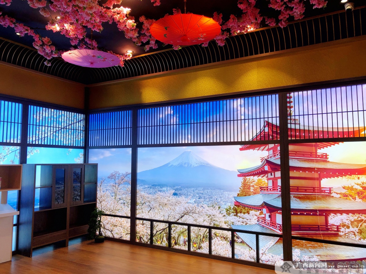 “我們現(xiàn)在看到的是‘春之色’部分,以最具有日本代表性的富士山與櫻花元素為春季設(shè)計(jì)核心,造型意向來(lái)自日本京都琉璃光院,讓人仿佛置身于一個(gè)與富士山隔空眺望的禪院。接下來(lái),這里是‘夏之聲’部分,里面包含了許多日本動(dòng)漫元素,其中不乏我們熟知的宮崎駿、手冢治蟲(chóng)等大師的作品展示,‘秋之韻’部分融合了日本秋天的楓葉美景;‘冬之盼’部分主要體現(xiàn)的是日本高科技技術(shù)”中國(guó)—東盟特色商品匯聚中心招商部RCEP區(qū)域高級(jí)經(jīng)理梁曉婷介紹道。